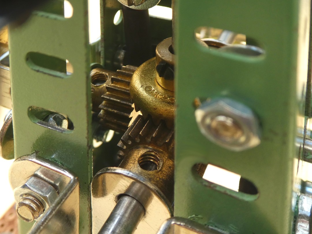 Am unteren Ende der zentralen Welle befindet sich ein Winkeltrieb 25Z auf 19Z, der die