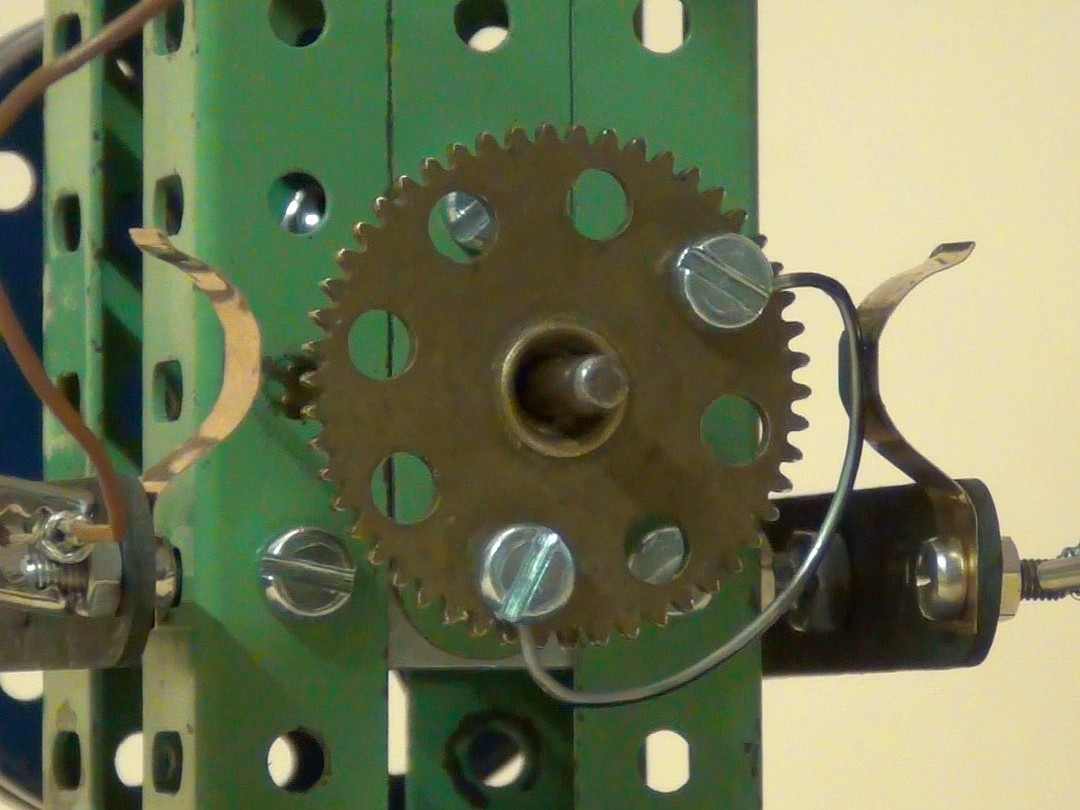 Kerne der senkrecht angebrachten Spulen sowie deren Pleuelstangen und der Schleifkontakt müsste einen Strom