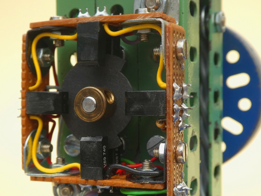 Die Lichtschranken sind 90° zueinander angeordnet und in deren Zentrum dreht sich eine Steuerscheibe aus